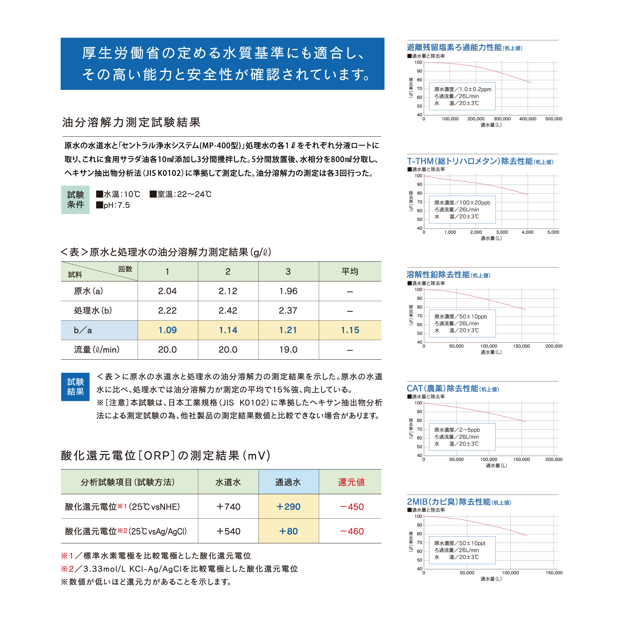 厚生労働省の定める水質基準にも適合し、その高い能力と安全性が確認されています。